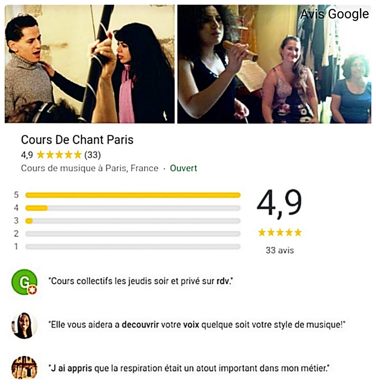 Un « Cours de chant à Paris « pour vous permettre de découvrir,développer et maîtriser l’ensemble des mécanismes permettant de chanter librement en cours privé ou collectif : gestion du souffle, placement du son, de la voix et du corps, les résonances, les différents registres et l’interprétation.. 😊